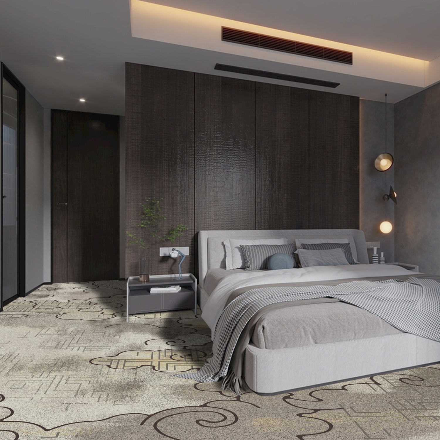 Kaili-Nylondruckteppiche werden durch gute neu eingebundene Beweglichkeit, helle Farben, vorzügliche Muster, gute Farbechtheit, Mehltau- und Mottenbeweis, Abnutzungswiderstand und feuchter Beweis gekennzeichnet. Alle diese Eigenschaften können die Nachfrage des einzelnen Benutzers nach personifizierten Mustern maximal zufriedenstellen. Diese Art des Teppichs ist passend, Bereiche öffentlich zu installieren wie der Konferenzsaal des Hotels und bewirtet Halle, Kaffeehaus und im Haus festlich.